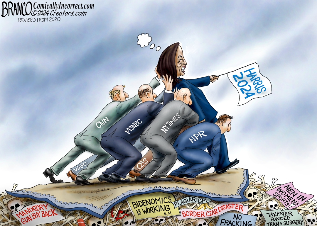 The Media (CBS, MSNBC, CNN, ABC, etc. are showing their complete bias in support of Kamala Harris, covering up her lies and cleverly editing her interviews. At the same time, misrepresenting Trump at every turn.
