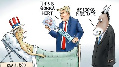 A.F. Branco Cartoon – People suspect that many Democrats and some Republicans are being paid off through CCP money and that it’s influencing their vote on China trade policies, all the while calling Trump a Putin puppet without evidence.