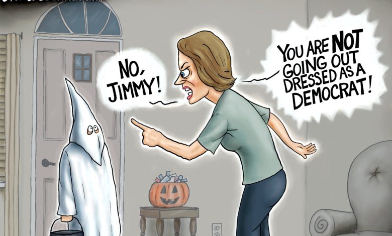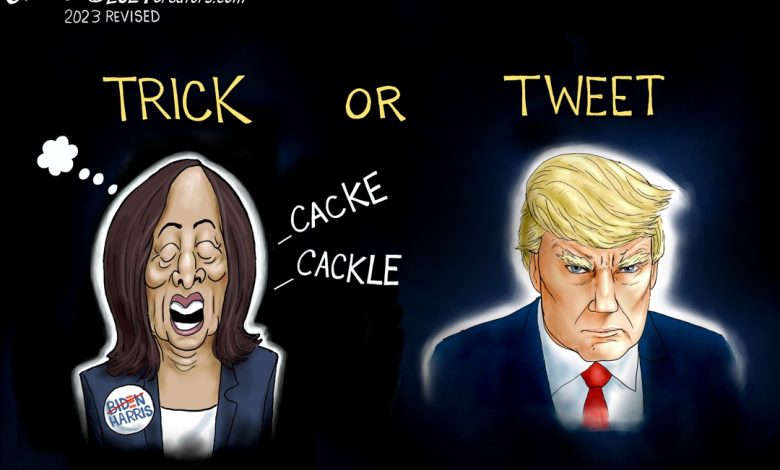 A.F Branco Cartoon – The choice in this election is clear: Sleight-of-hand leftist Tricks or the abrasive truth in the…