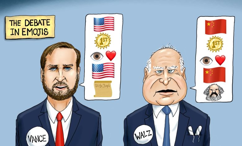 A.F. Branco Cartoon – Putting the VP debate in simple terms. Vance spoke from a put-America-first perspective to solve America’s problems, while Walz…